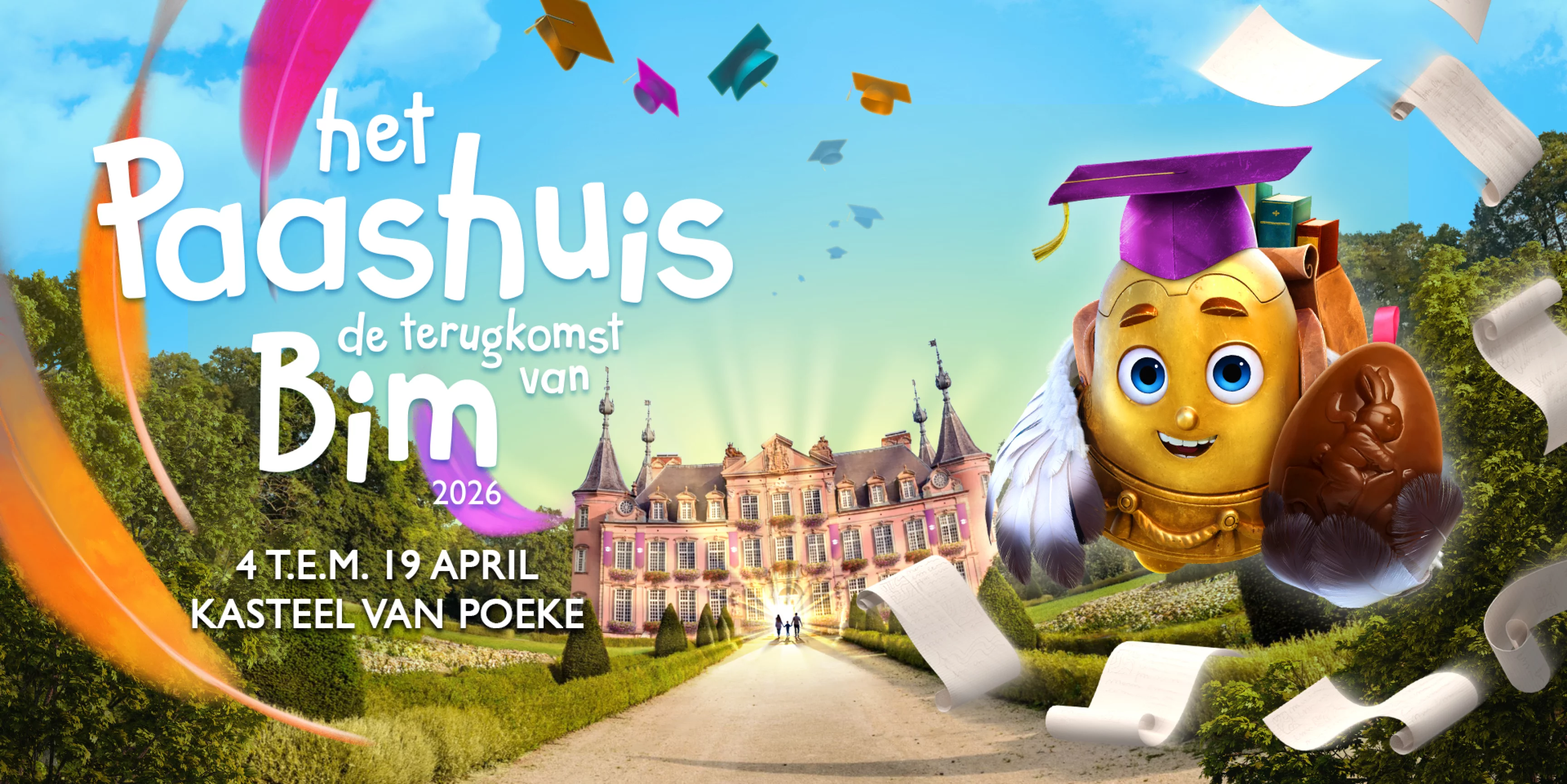 Van 4 tot en met 19 april opent het Paashuis opnieuw zijn poorten voor een fantasierijk paasspectakel! Stap binnen in Kasteel van Poeke in Aalter en ontmoet de excentrieke familie Paeshuys, die Bim en de andere paasklokken bijstaat volgens eeuwenoude tradities.