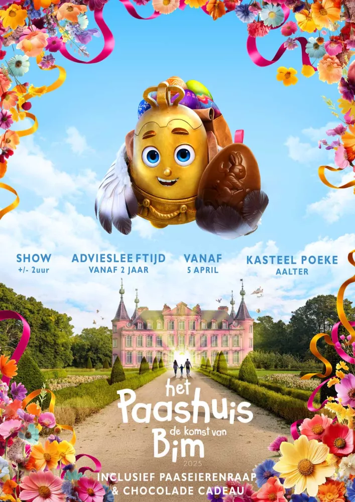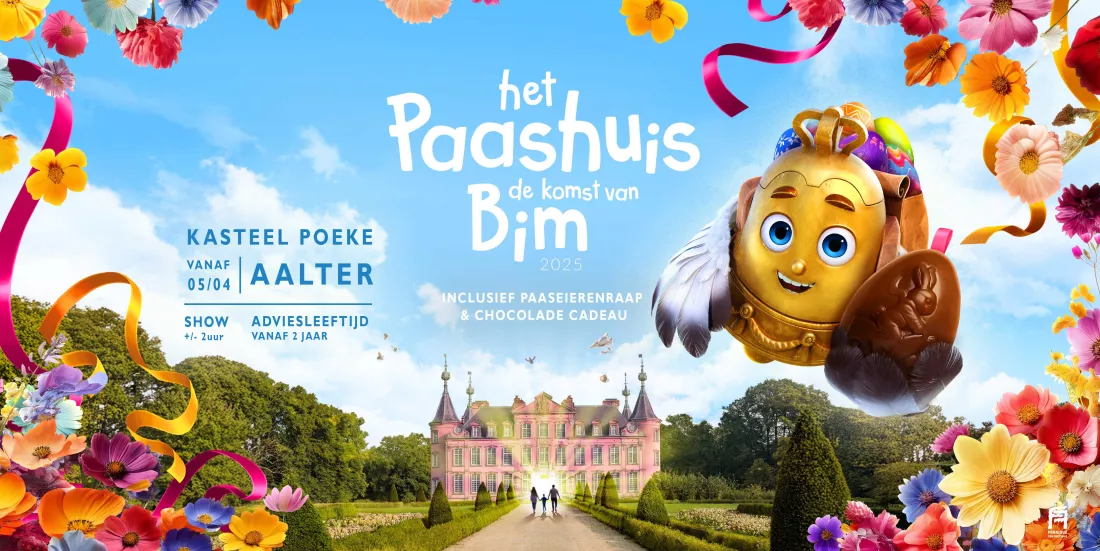 Van 5 tot en met 21 april opent het Kasteel van Poeke in Aalter zijn poorten voor een betoverend paasspektakel! Stap binnen in het Paashuis en ontmoet de gekke familie Paeshuys, die elk jaar alles in gereedheid brengt voor de komst van paasklok Bim en zijn vrienden.